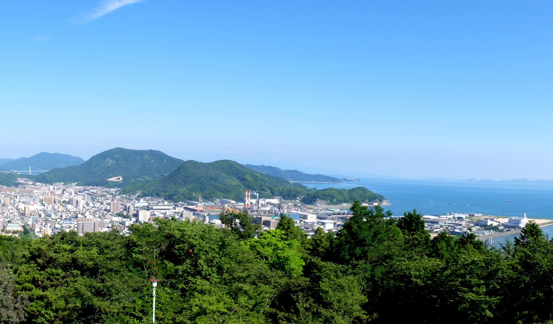 呉市東部の街並みや瀬戸内海を一望できる、標高約200mの山頂に整備された公園です。