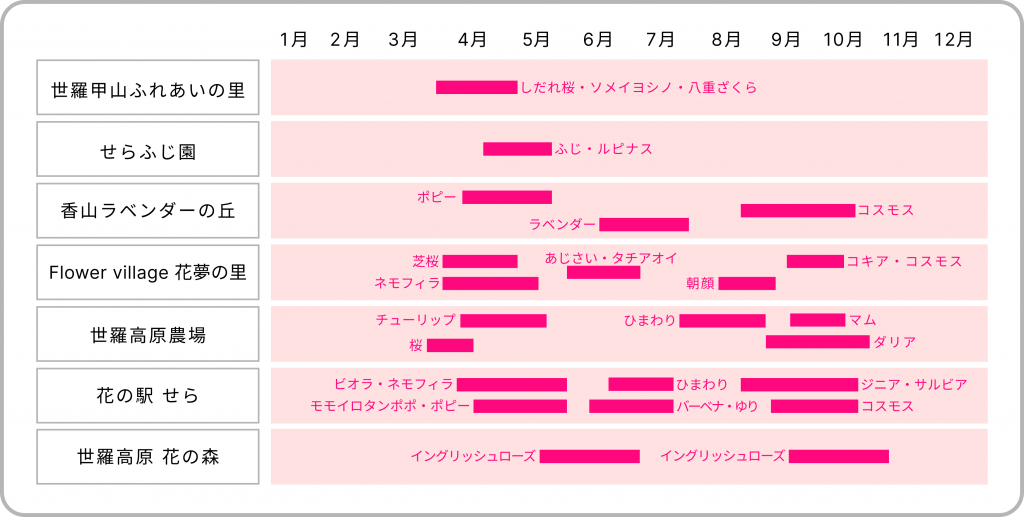 世羅町にある全7か所の花観光農園で咲く花々をカレンダーでご紹介!